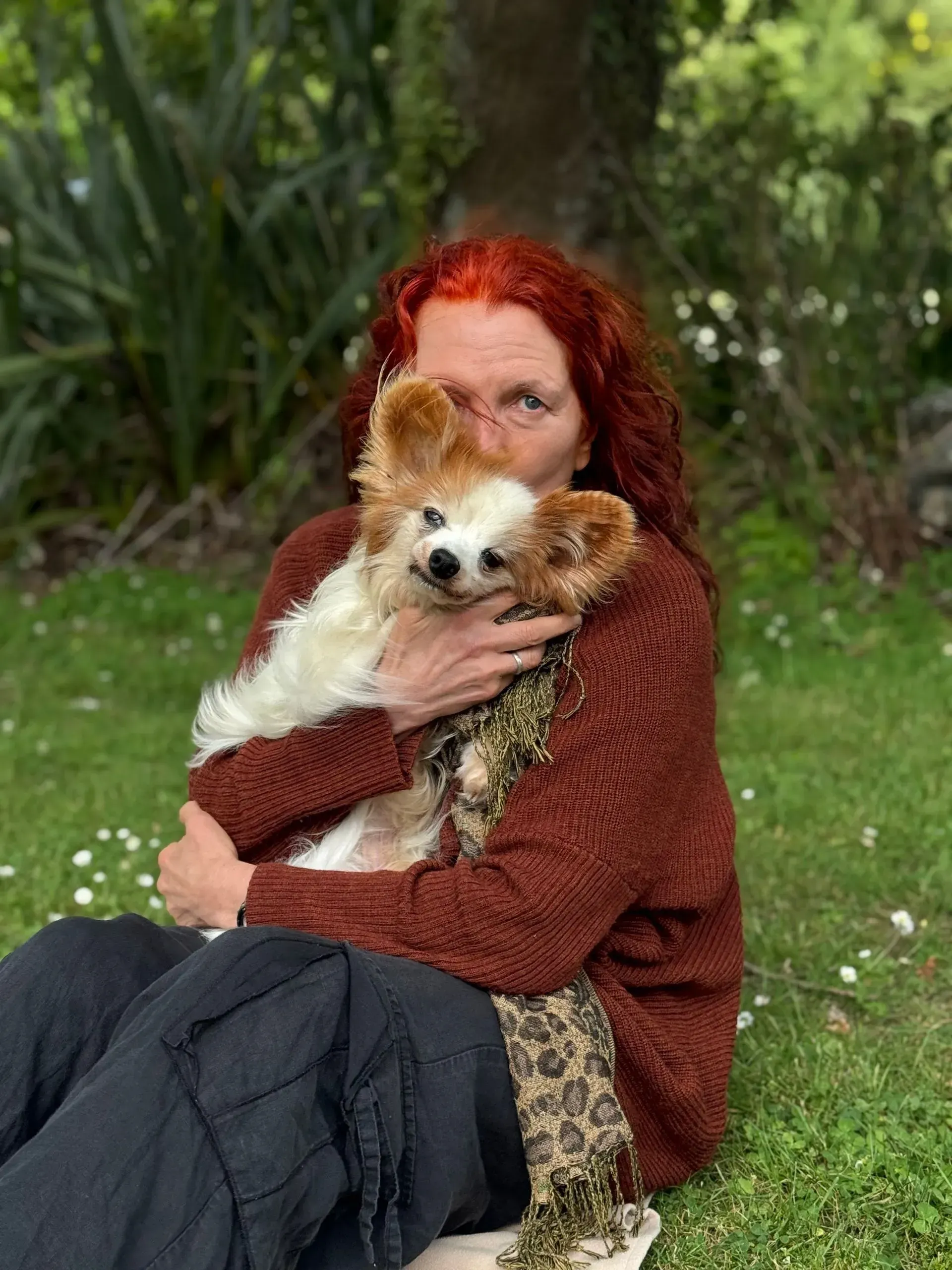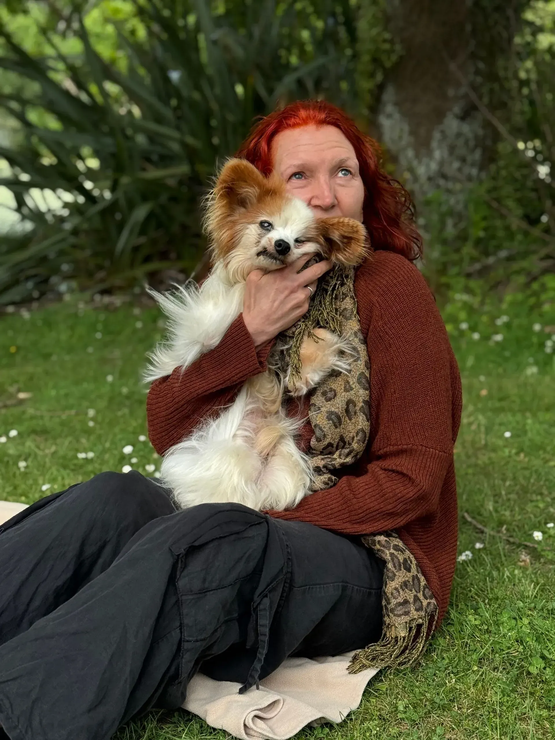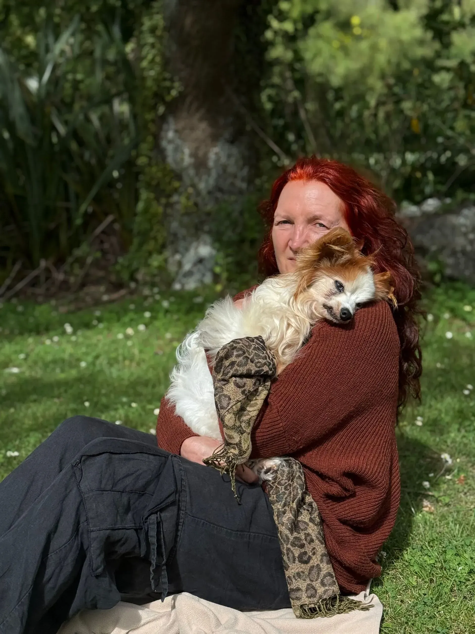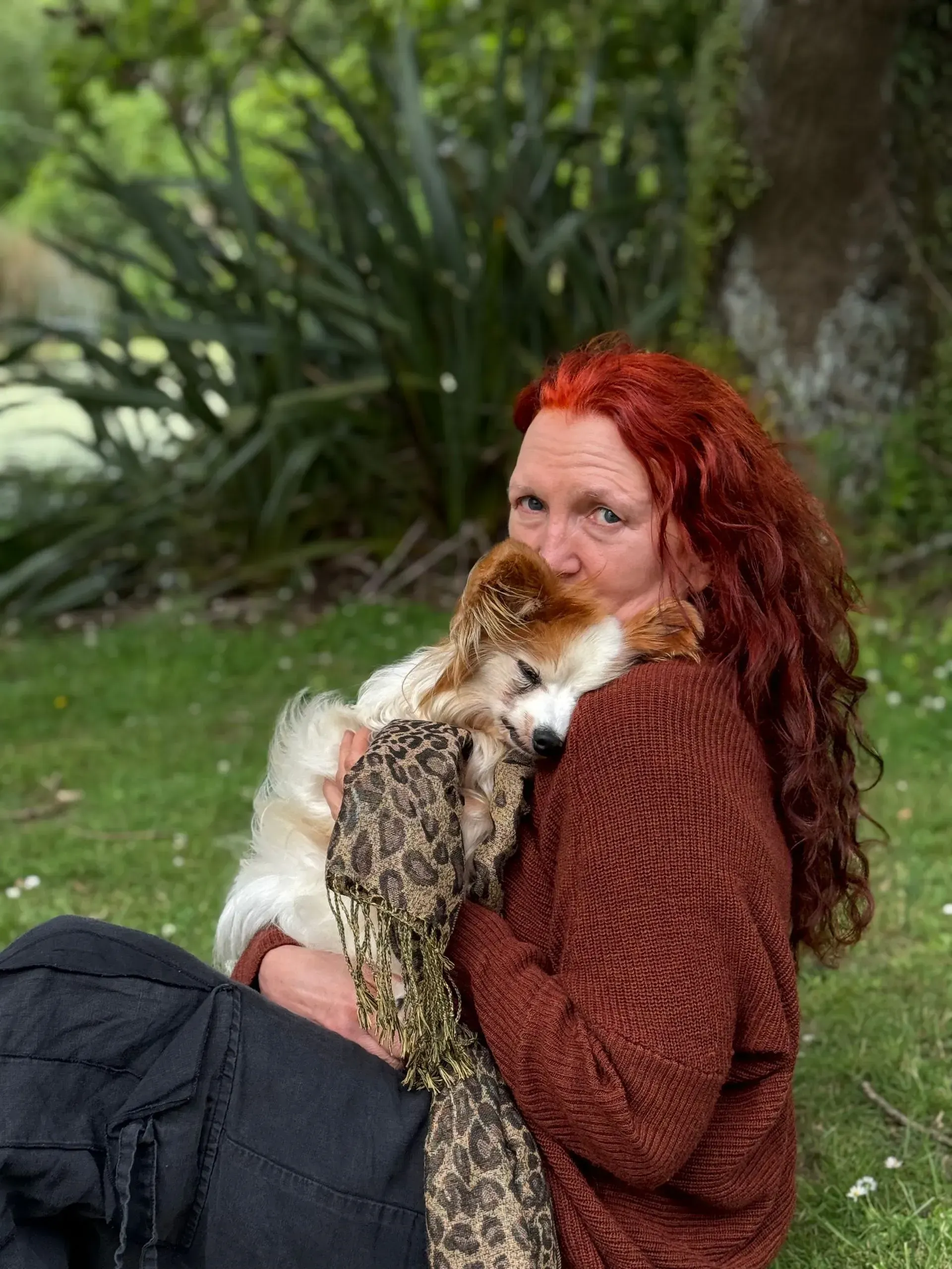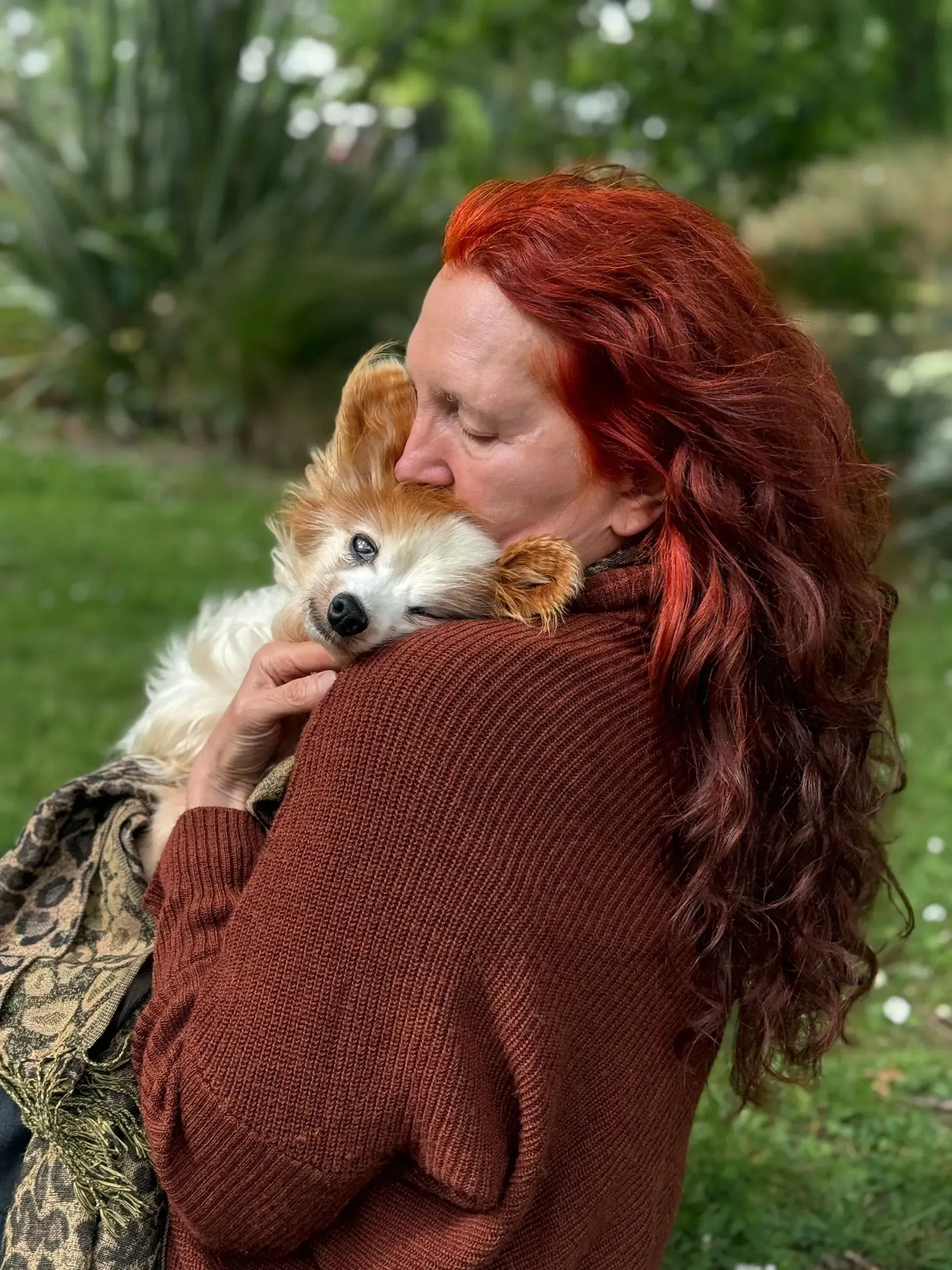 Spaced out to the maximum: Harry shows total, symmetrical flaccidity, hanging "coathanger-style" over the shoulder. The "spaced out" gaze matches the description of the vacant look that was mislabelled as a brain event. Despite being in his owner's arms, he exhibits a total absence of sensory engagement, confirming his system was pharmacologically overloaded.